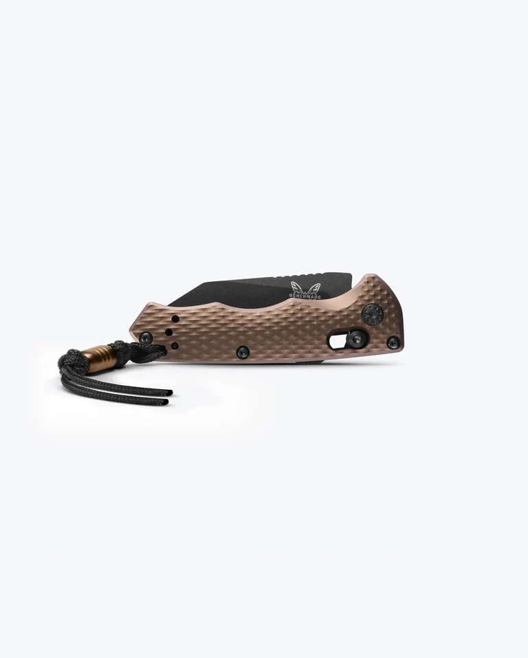 When blade length is restricted, necessity isn’t. Designed for ease of concealment and compact utility, the Auto Immunity™ features a sub-2.5-inch CPM-M4 blade with a Cobalt Black Cerakote finish, boasting outstanding edge retention and strength in a Wharncliffe profile tapering to an ultra-fine point. The included lanyard speeds up retrieval from the pocket for quick deployment via the ambidextrous Auto AXIS mechanism, enabling rapid response in evolving situations. Finished with anodized Flat Dark Earth aluminum handle scales, the Auto Immunity™ is a concentrated dose of full-fledged utility in a compact configuration.