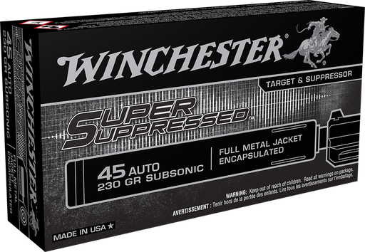 WINCHESTER SUP45 SUPER SUPPRESSED 45ACP SUBSONIC 230GR ENCAPSULATED FULL METAL JACKET 50 RNDS