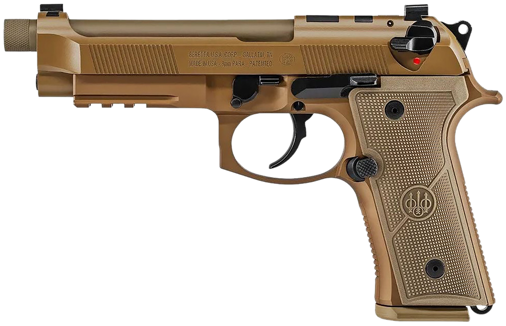 The Beretta M9A4 pistol is designed for any tactical situation, including home and personal defense, tactical competitions and duty carry. Features include a red-dot optic ready slide, Cerakote FDE finish, 3 slot Picatinny rail, beveled magazine well, aggressively texturized 92X-style thin grips for instinctive control and a more natural fit for all shooters.