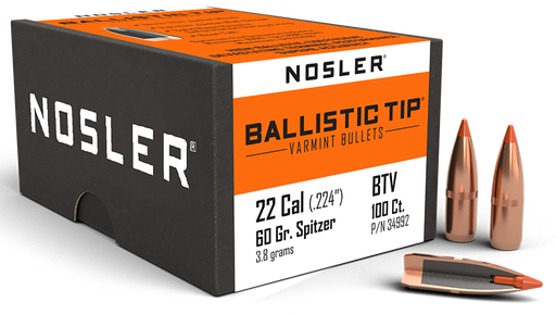 NOSLER BALLISTIC TIP, NOS 34992 BLSTC VAR 22 60 SP 100