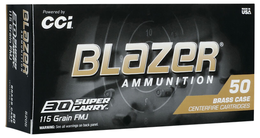 CCI 5205 BLAZER BRASS HANDGUN 30SUPER CARRY 115GR FULL METAL JACKET FLAT NOSE 50 PER BOX/20 CASE