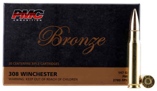 PMC 308B BRONZE 308 WIN 147 GRAIN FULL METAL JACKET BOAT TAIL 20 RNDS