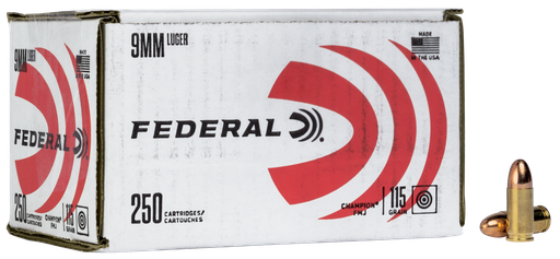 FEDERAL C9115A250 CHAMPION TRAINING 9MM 115GR FMJ 250 PER BOX
