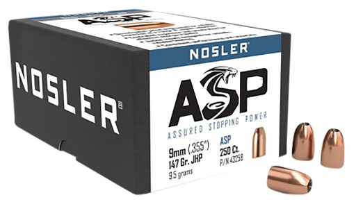 NOSLER ASSURED STOPPING POWER, NOS 43258 HANDGUN 9MM 147 JHP 250