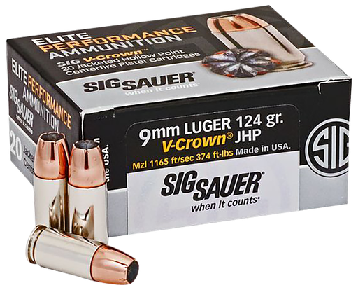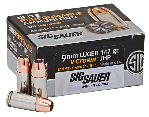 SIG SAUER E9MMA350 ELITE PERFORMANCE 9MM LUGER 147GR V-CROWN JACKETED HOLLOW POINT 50 PER BOX