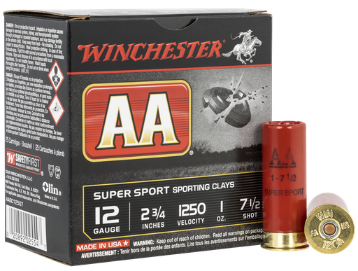 WINCHESTER AASC12507 AA SUPER SPORT SPORTING CLAY 12 GAUGE 2.75" 1OZ 7.5 SHOT 25 RNDS