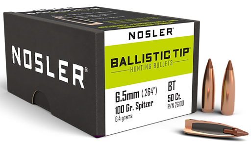 NOSLER 26100 BALLISTIC TIP 6.5CREEDMOOR 100GR SPITZER 50/BOX