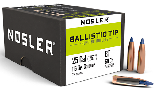 NOSLER BALLISTIC TIP, NOS 25115 BLSTC HNT 25 115 SPTZR 50
