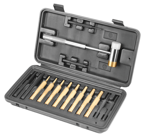 WHEELER MASTER ROLL PIN PUNCH SET STEEL UNIVERSAL KNURLED HANDLE 19 PIECES 110128