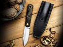 In this fixed version, tradition, everyday utility and a touch of tactical finesse find a harmonious harmony. The compact Barlow BFF is made of ice-hardened AEB-L, a versatile blade steel with excellent cutting capabilities, good rust resistance and easy resharpening. Designed as a fixed blade, this version of the timeless classic is equipped with contoured handle scales made of local walnut wood and fits comfortably in the hand. The decorative hollow brass stud also serves as a lanyard hole and, together with the studs in the same colour, adds a visual accent. Supplied with a custom-fit black leather sheath that ensures a high level of carrying comfort thanks to the integrated clip. Handmade in the Boker Knife Manufactory in Solingen.