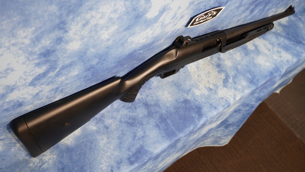 - Smooth-button magazine cut-off mechanism in the forend—quickly remove chambered shell without emptying magazine