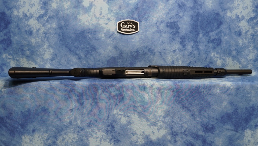 - 18.5" matte blued barrel with fixed modified choke for optimum shot coverage in close-quarters engagements