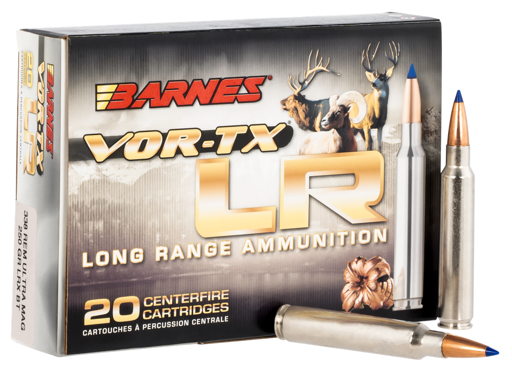 This ammunition features high-quality all-copper Barnes LRX bullets, engineered for exceptional accuracy at extended distances and unmatched performance on game at any range. Barnes Bullets 29061 VOR-TX Long Range 338RUM 250gr LRX Boat Tail, available in boxes of 20 and cases of 10.
