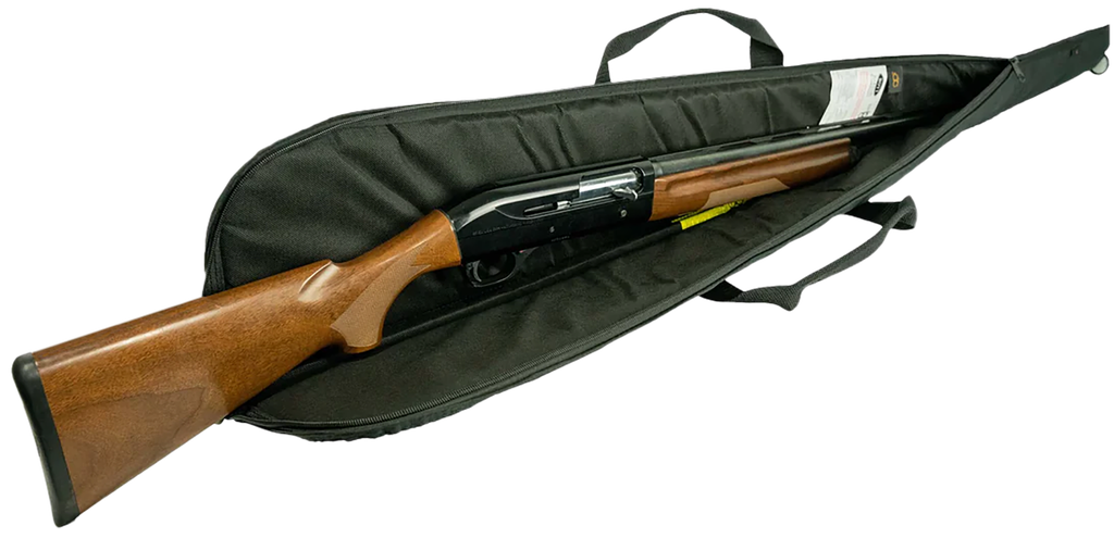 The Bob Allen Club Series shotgun case is constructed of Ripstop nylon with a nylon self-repairing zipper, polyweb handles and foam padding.