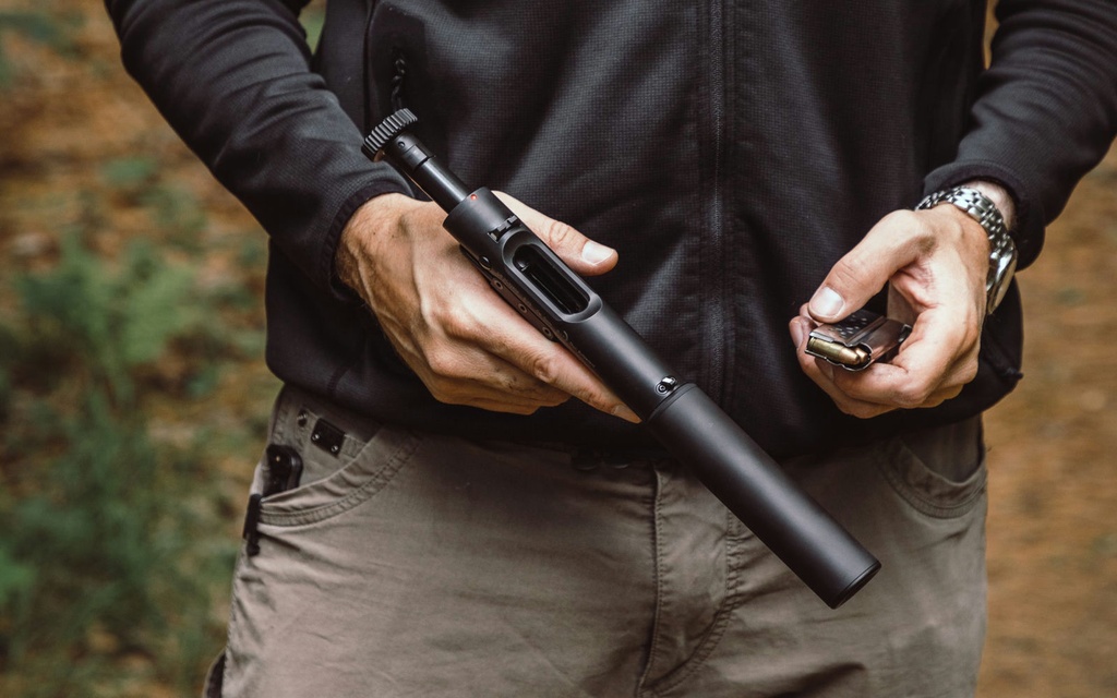 Drawing from the secretive World War II Welrod and the VP9, this compact integrally suppressed pistol offers an enhanced grip and magazine while maintaining a low profile and silent performance.
