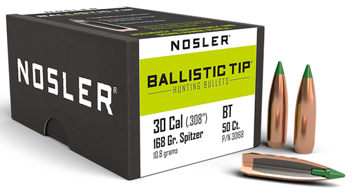 NOSLER 30168 BALLISTIC TIP 30CALIBER 168GR SPITZER 50/BOX