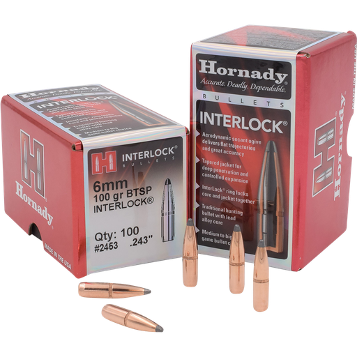 HORNADY 2453 INTERLOCK 6MM .243 100 GR BOAT TAIL SPIRE POINT 100 PER BOX/ 25 CASE