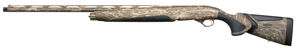 Beretta's A400 Xtreme semiauto shotgun is ideal for upland or waterfowl hunting as well as target shooting. The action gives fast follow-up shots and is equipped with built-in rails, so you can easily mount optics. The unique Blink technology, shoots 36 percent quicker than any other type of semiauto shotgun. Its synthetic stock combines Beretta's Kick-Off system with an ultra-soft Micro-Core butt-pad, to minimize recoil and is designed to recoil parallel to the cheek mount. The OptimaBore HP barrel's finish offers superior resistance to the elements, including water, powder, sand and salt spray. The A400 Xtreme Plus features Beretta's exclusive Steelium Plus barrel, providing the best patterning possible from all hunting loads, along with further felt recoil mitigation. The barrel also utilizes a step rib with an integral mid-bead and fiber optic front bead, and lengthened forcing cones. Its stock features a soft comb, which reduces the felt recoil imparted to the shooter's cheek even further. The A400 Xtreme Plus also has an enlarged loading port, extended charging handle and bolt release, and Aqua Technology which is a protective coating to withstand the harshest elements. This model has a 28" barrel with five (5) black extended Optima HP choke tubes, Mossy Oak Bottomland stock and receiver.