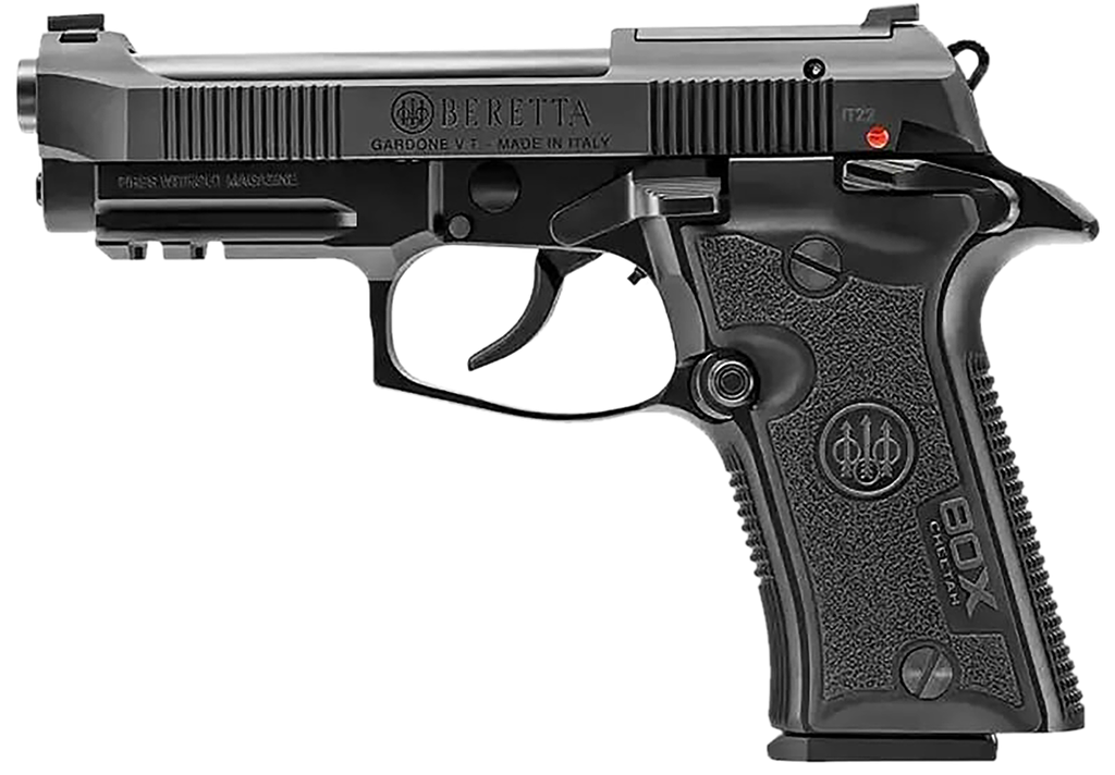 The Beretta 80X Cheetah pistol reimagines the legendary platform, with a new sleek design and enhanced features. Ergonomically redesigned for modern day carry, the 80X Cheetah includes a smaller Vertec style grip profile, the X-treme S Double/Single trigger, auto firing pin and ambidextrous thumb safeties, skeletonized hammer and optics-ready out of the box. Includes hard gun case and magazine.