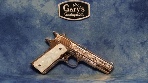 COLT 1911 GOVERNMENT 45 ACP DIAMONDS ON 18K ROSE GOLD 5" BBL SEATTLE ENGRAVING CENTER