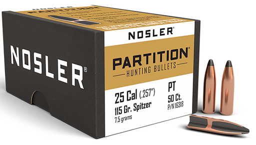 NOSLER 16318 PARTITION 25CAL 115GR SPITZER 50/BOX