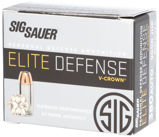 SIG SAUER E380A120 ELITE DEFENSE 380 ACP 90GR V-CROWN JHP