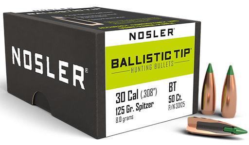 NOSLER BALLISTIC TIP, 30125 BLSTC HNT 30C 125 SPTZR 50