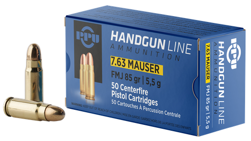 PPU PPH763 HANDGUN 7.63MM MAUSER 85GR FULL METAL JACKET 50 PER BOX/10 CASE