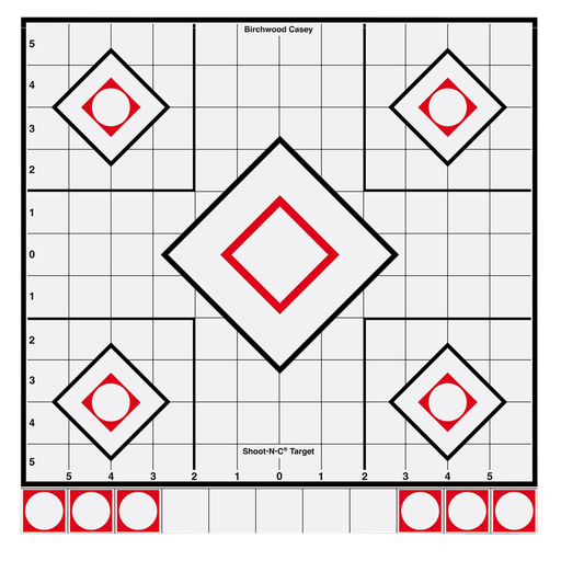 BIRCHWOOD CASEY 34219 SHOOT-N-C REACTIVE TARGET SELF-ADHESIVE PAPER WHITE/RED 12" 5-DIAMOND 5 PACK