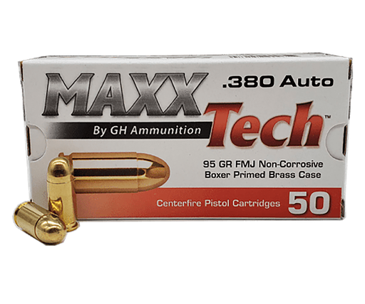 MAXXTECH PTGB380B BRASS PISTOL 380 ACP 95 GRAIN FULL METAL JACKET 50 RNDS